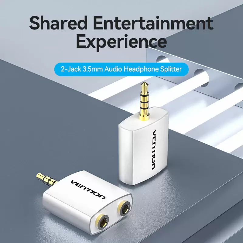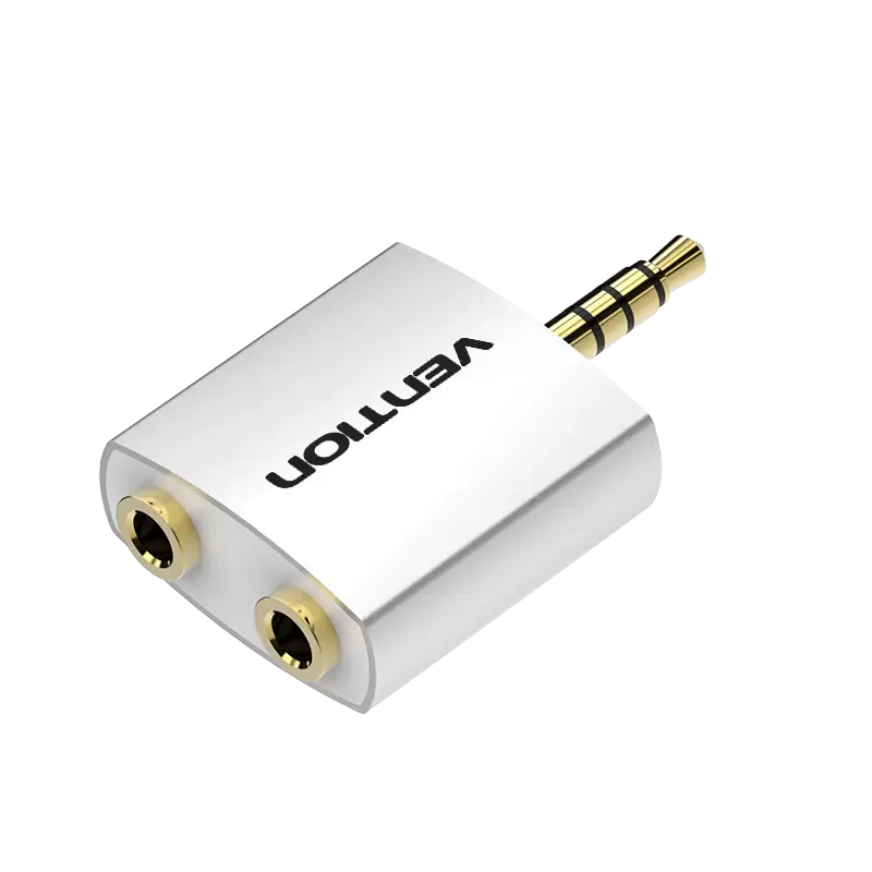 4 Pole 3.5mm Male to 2*3.5mm Female Audio Adapter Silvery Metal Type