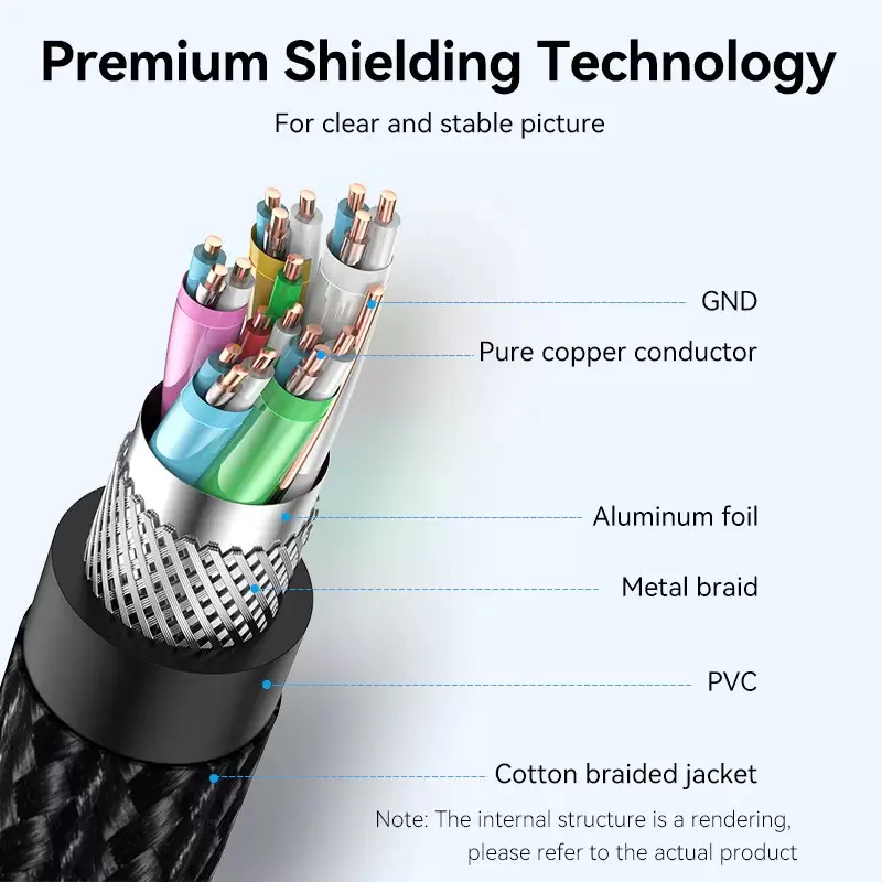 Cotton Braided 4K DP Male to HDMI-A Male HD Cable 1M Black
