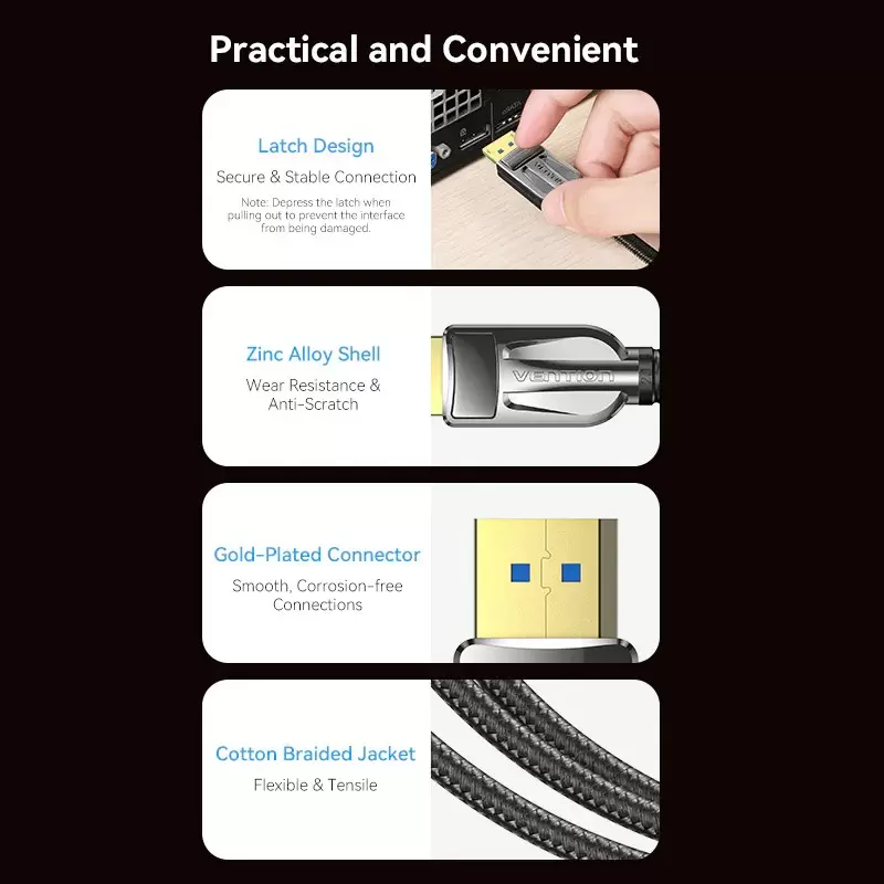 Cotton Braided DP 2.1 Male to Male 16K HD Cable 5M Black Zinc Alloy Type
