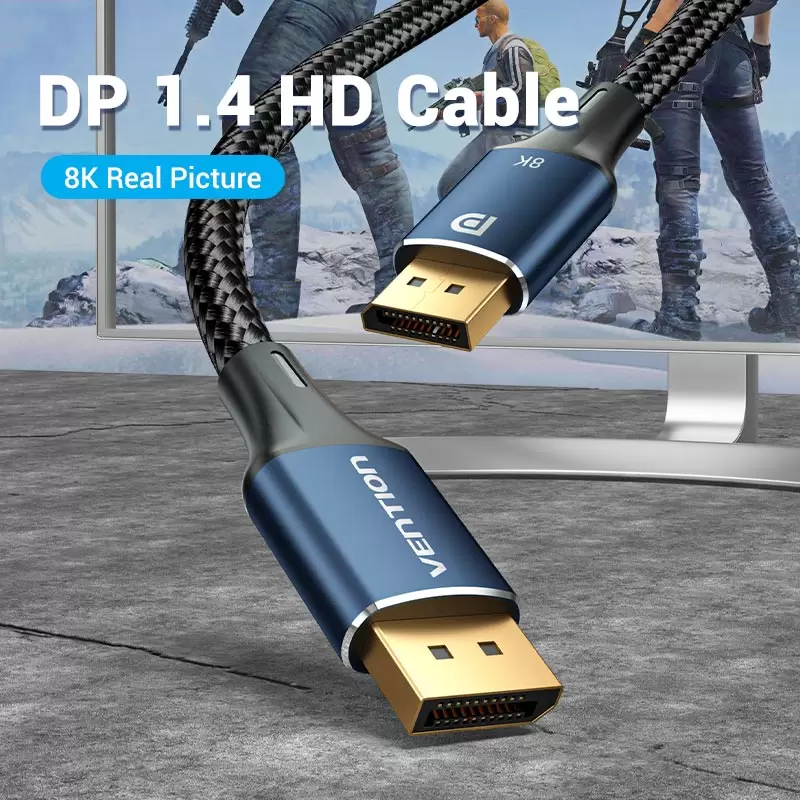 Cotton Braided DP Male to Male HD Cable 8K 2M Blue Aluminum Alloy Type