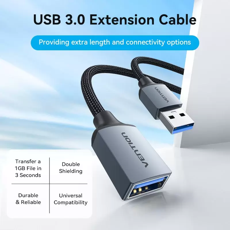 Cotton Braided USB 3.0 Type A Male to Female Extension Cable 1M Gray Aluminum Alloy Type