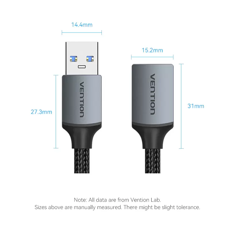 Cotton Braided USB 3.0 Type A Male to Female Extension Cable 2M Gray Aluminum Alloy Type
