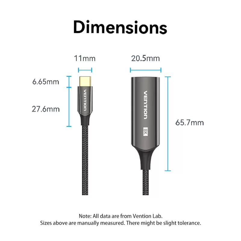 Cotton Braided USB-C to DP 8K Converter 0.25M Black Zinc Alloy Type
