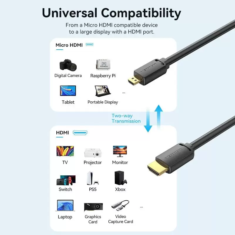 HDMI-D Male to HDMI-A Male 4K HD Cable 1.5M Black