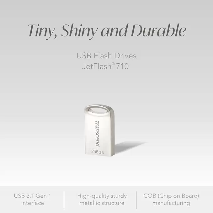 The Transcend 128GB JF710S USB Flash Drive combines high-speed USB 3.1 Gen 1 performance with a durable metallic housing and ultra-compact design. Engineered with COB technology, it resists dust, shocks, and splashes, making it ideal for professionals who demand reliable, portable storage. Its 128GB capacity and included Transcend Elite software empower efficient data management, all in a sleek silver finish that fits unobtrusively into any USB port.