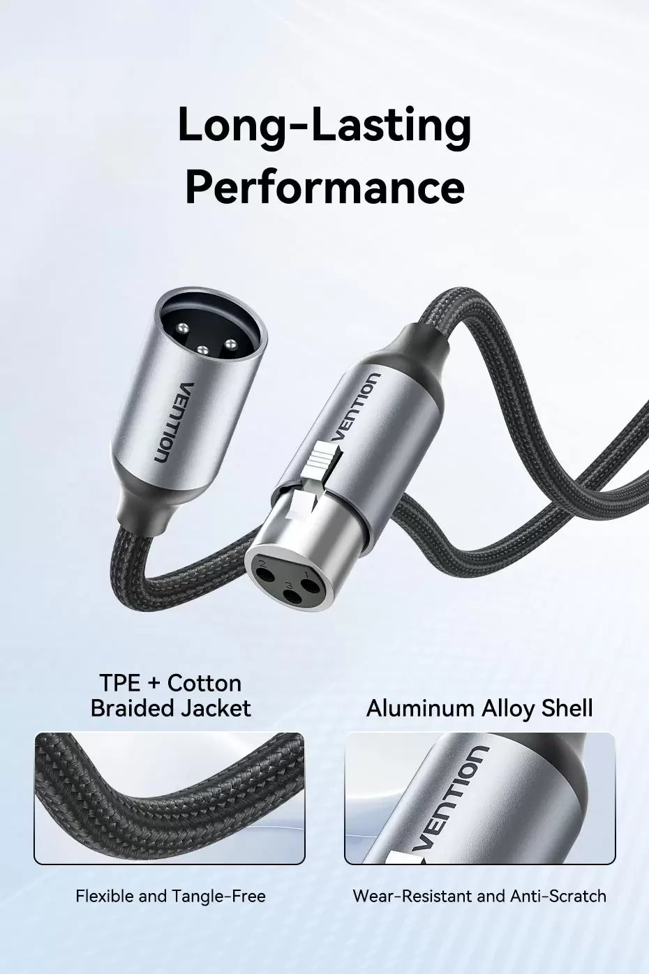 XLR Audio Extension Cable 3M Gray Aluminum Alloy Type